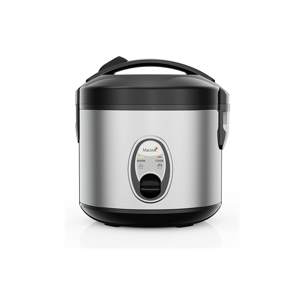 Macook Rice Cooker & Steamer (5 Cups, 1 Litre) for 1-10 People - Stainless Steel, Non-Stick Pot, BPA-Free, Automatic Cooking and Auto Warm Function