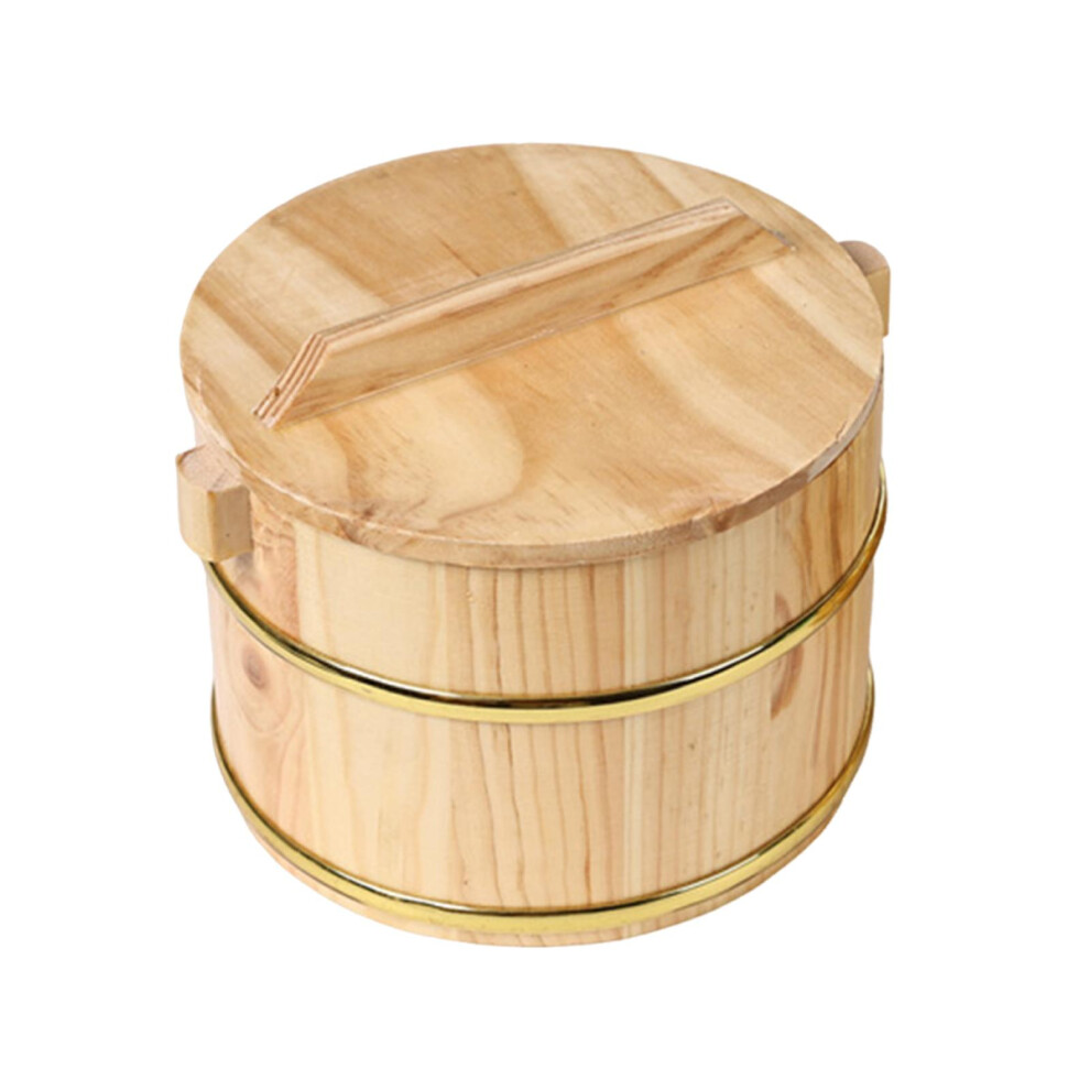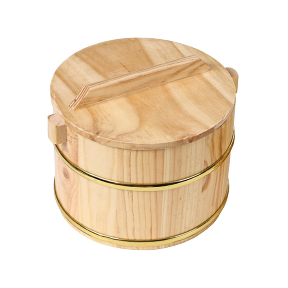 (Brown, 16x16x11cm) Steamed Rice Wooden Container Sturdy Steamer For Sushi And Traditional
