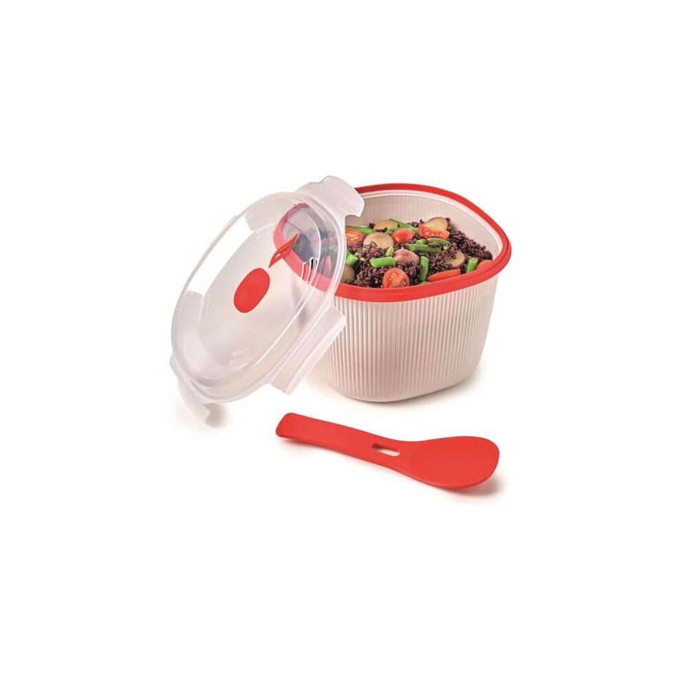Snips - Microwave Rice Cooker - For Rice, Grains and Vegetables - Microwave rice steamer, 2.70 litres - 20.5 x 20.5 x 14.5 cm - Rice Cooker Microwave, White and red - 100% Made in Italy