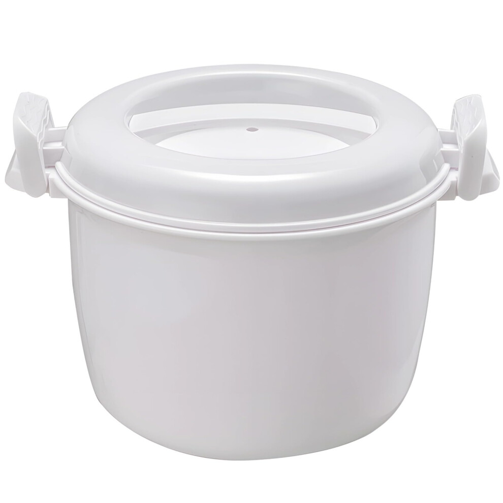 Microwave Cooker Large White 3Cup Mini Rice Cooker And Steamer With Locking Vent Lids