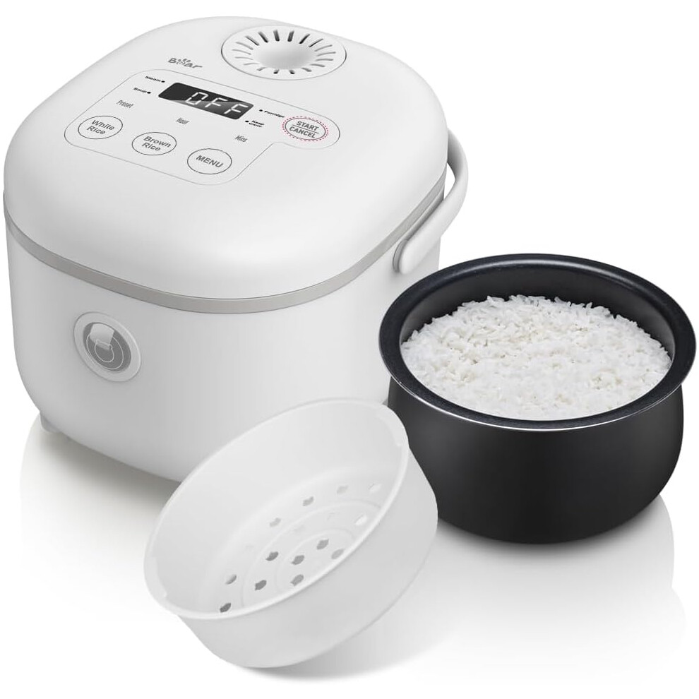Bear Multifunctional 4 Cups(Uncooked) Rice Cooker with Steamer and 6 Rice Cooking Functions for 2-3 People - Perfect for White/Brown Rice, Porridge,
