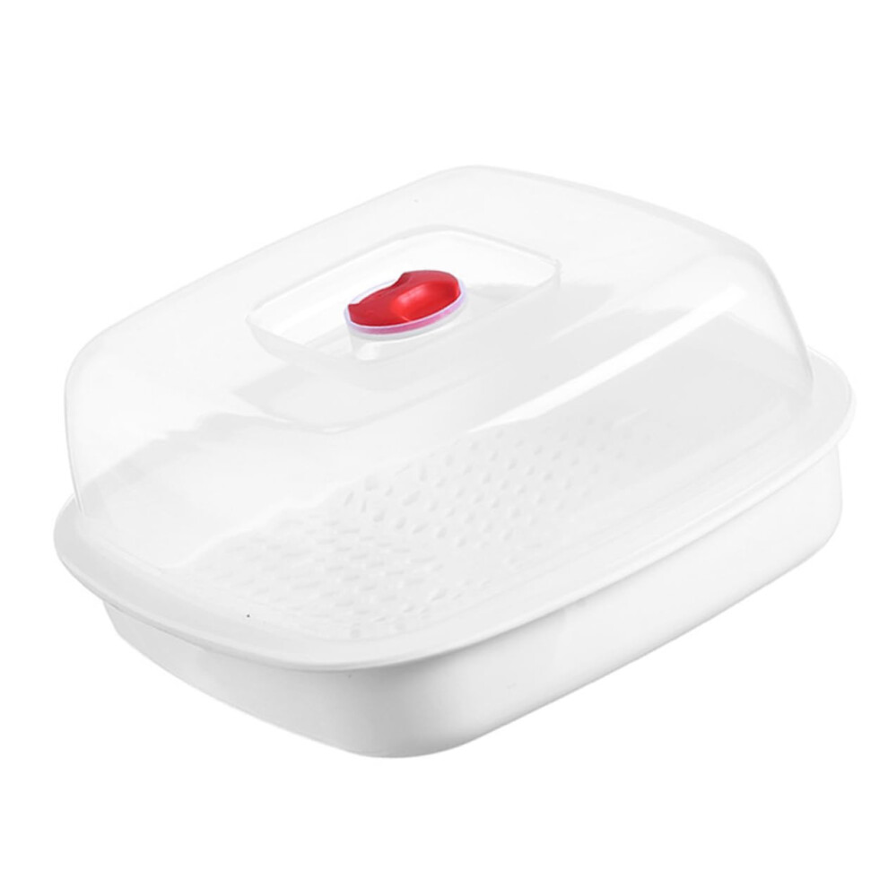 Microwave Steamer Lid Lock For Moisture Control And Healthy Cooking, Rice Steamer Compatible, Easy To Use, White 21.00X21.00X11.00CM