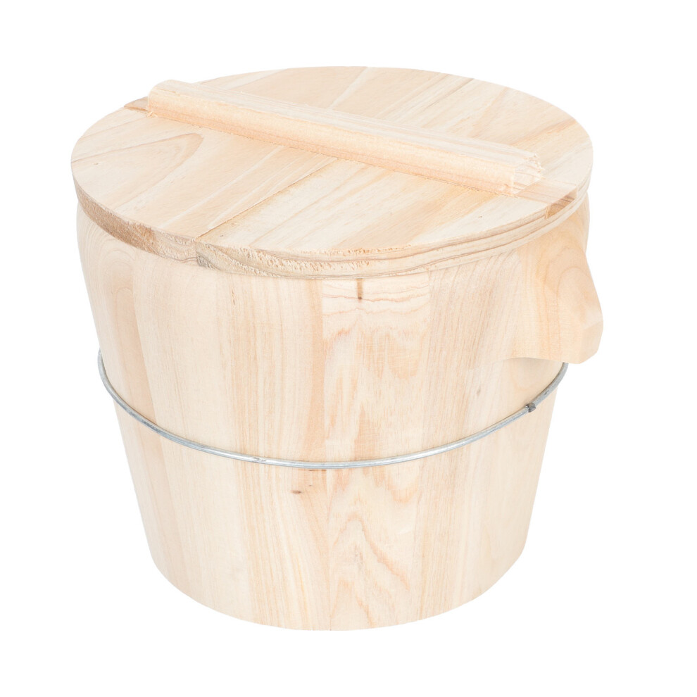 Set Of Wooden Rice Bucket And Steamer For Kitchen Storage