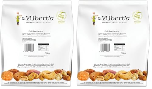 Mr Filbert's Chilli Rice Crackers – 500g Sharing Bag | Spicy & Crunchy Snack | Palm Oil Free | Gourmet Party Snack (Pack of 2)