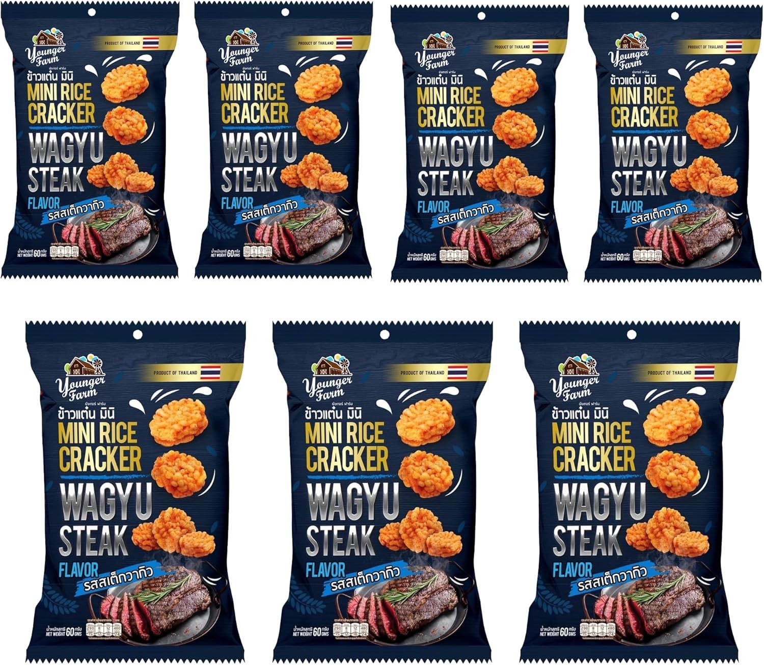 Younger Farm Wagyu Steak Mini Rice Crackers. Pack of 7 - Made from 100% Thai St