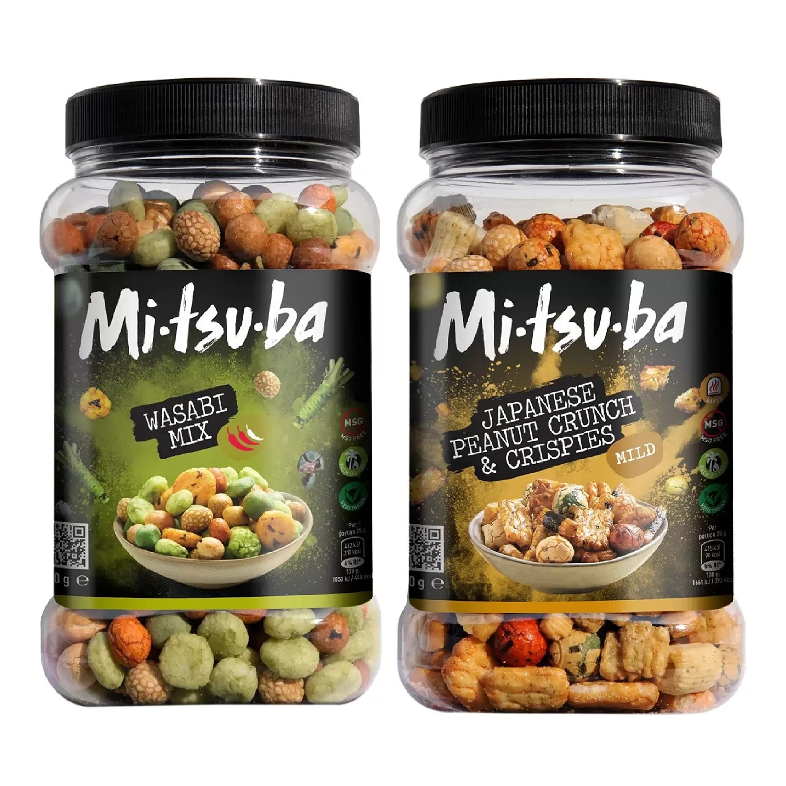 Mitsuba Peanuts & Rice Crackers Crisps - Wasabi 800g & Japanese Snacks 650g