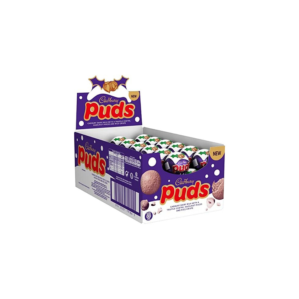 Cadbury Christmas Dairy Milk Puds Multipack, Chocolate Puds with Truffle Centre, Hazelnut Pieces and Rice Crisps, Christmas Treat for Sharing, 35 g (Box of 48)