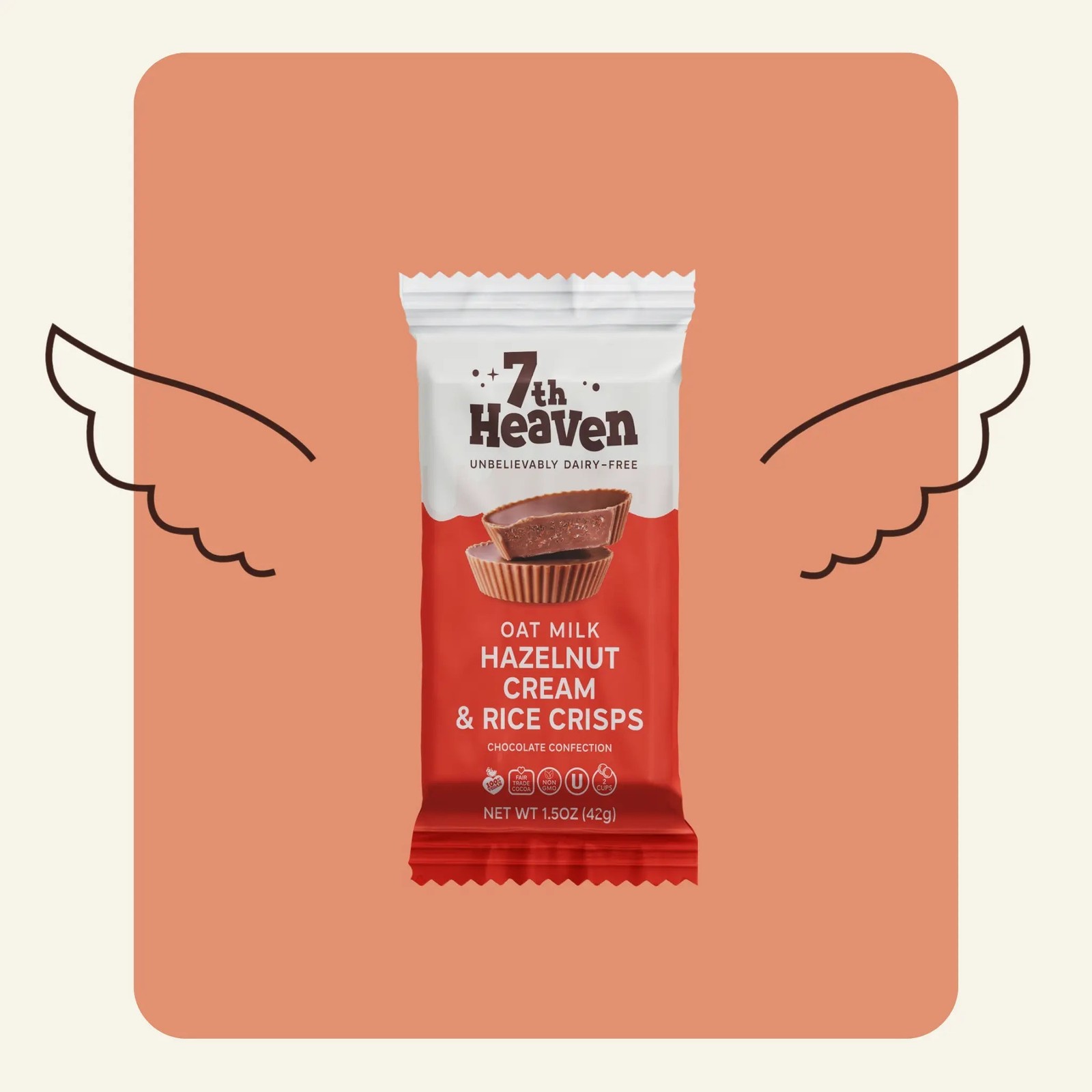 7th Heaven Hazelnut Cream and Rice Crisps Cream Cups Oat Milk Chocolate 42g