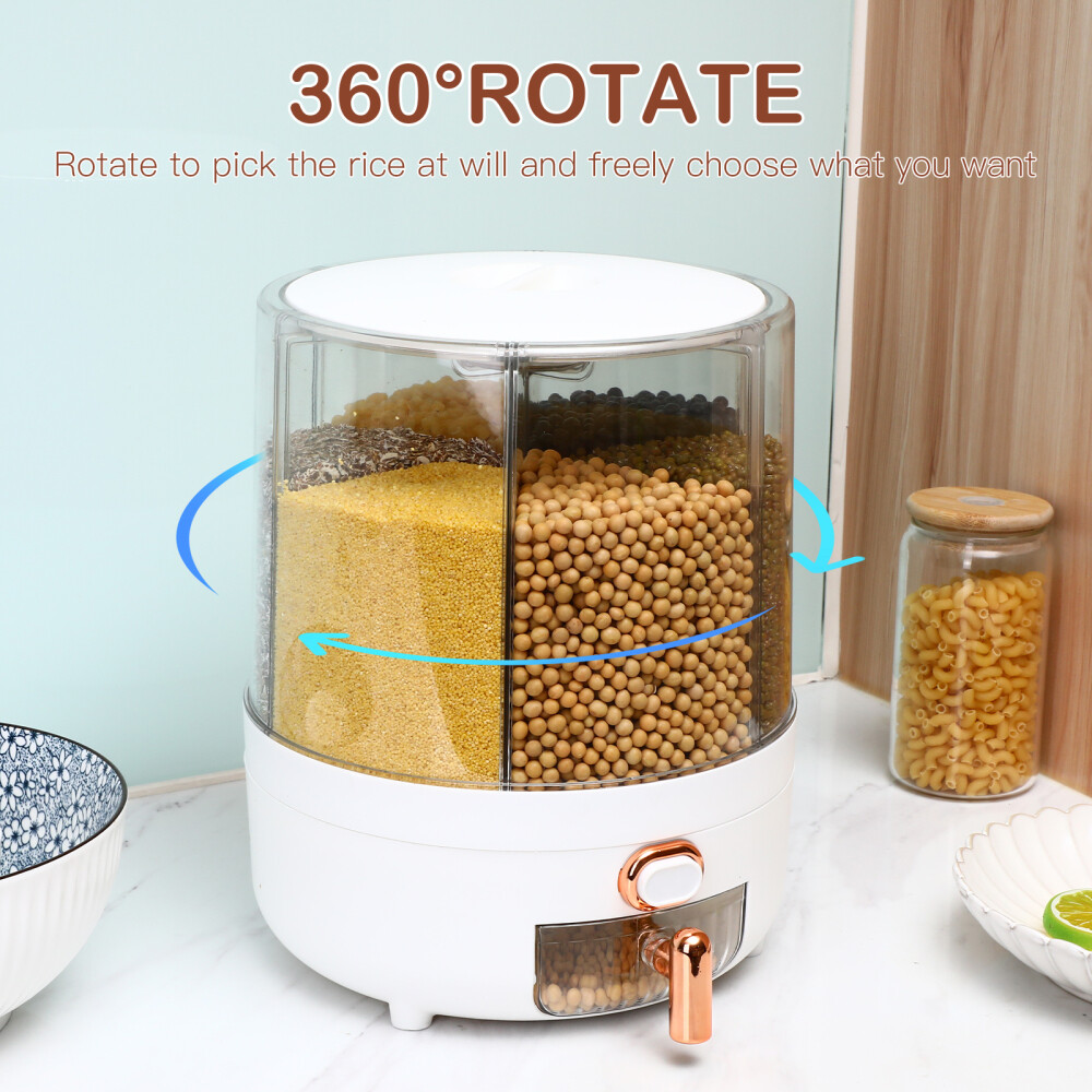 (10Kg)Rice Dispenser 6 Grids Rotating Cereal Dispenser Made Of Pp With Removable