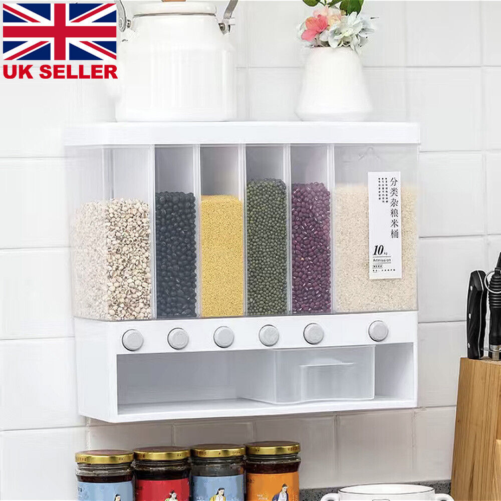 6 in 1 10kg Kitchen Rice Dispenser Container Cereal Box Dry Food Grain Storage
