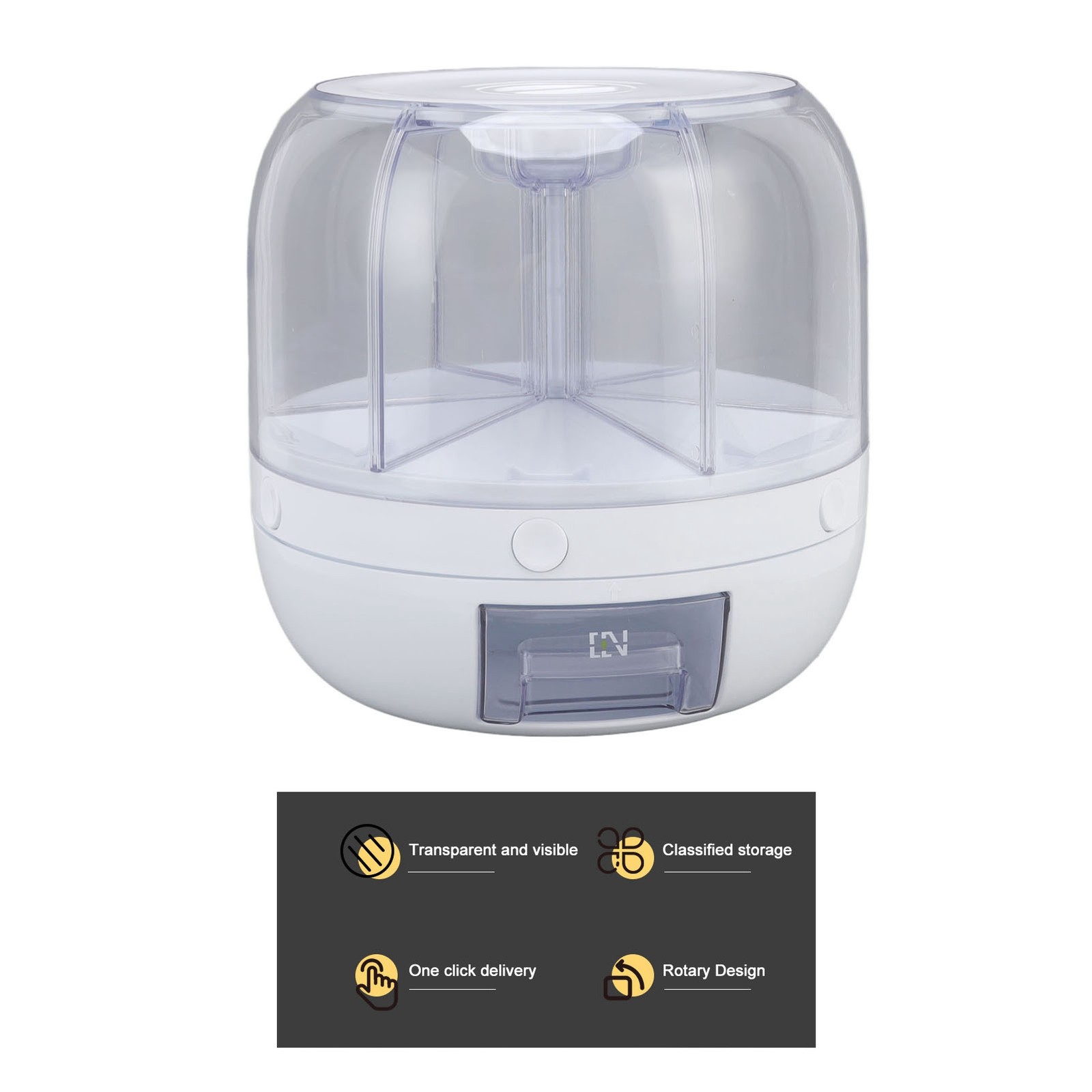 6-Grid Rice Dispenser 360° Rotating Dry Food Cereal Kitchen Storage Container