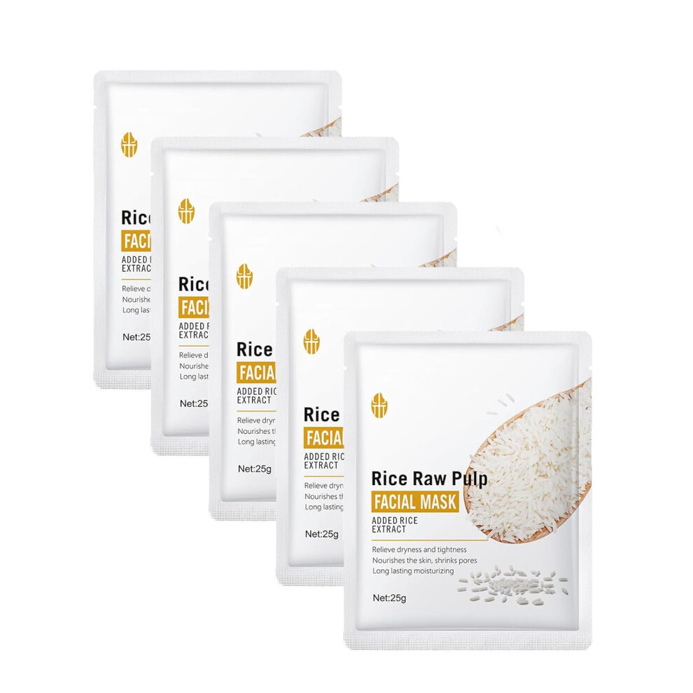 Rice Face Mask 5PC Set Hydrating and Brightening Rice Essence for Deep Nourishment and Gentle Care