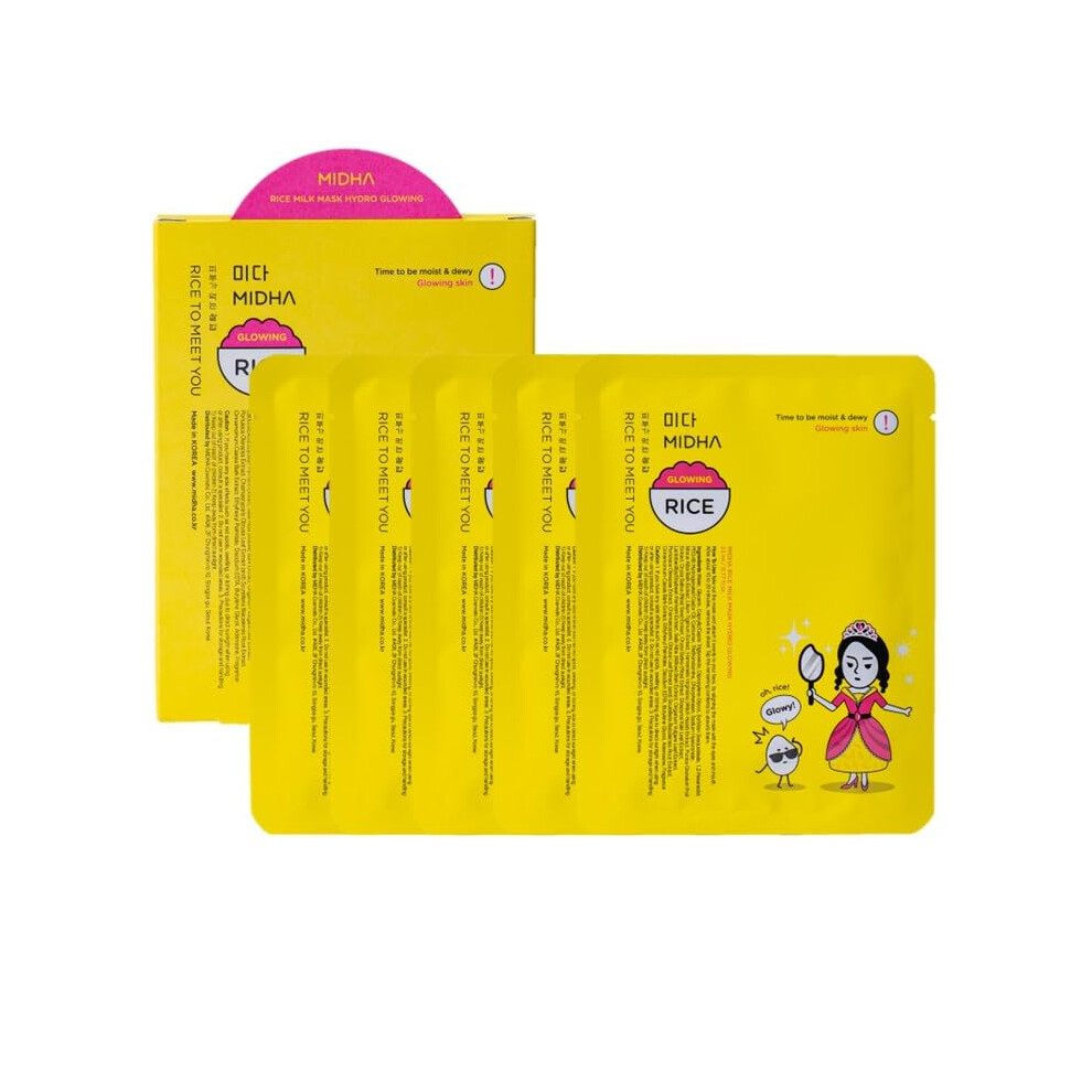 MIDHA Rice Milk Mask Hydro Glowing moisturizing and glowing facial sheet mask 5ea 1Pack helps to immediately hydrate and make natural glowy skin