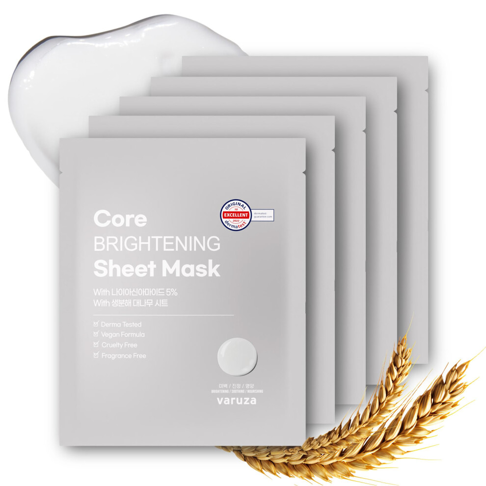 Core Brightening Face Mask with Niacinamide Serum 5% Korean Rice Face Mask for Glass Skin Care Moisturizing Glowing Sheet Masks for Facial Treatment
