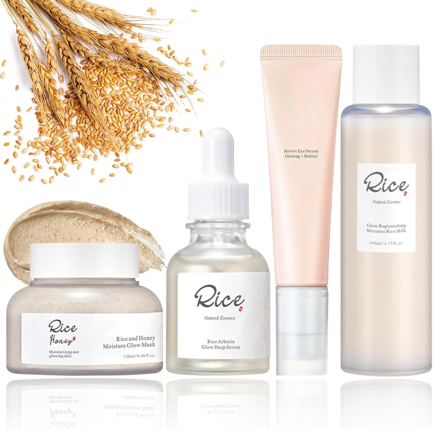 Korean 4-Step Glass Skin Set Rice Honey Mask Serum Eye Care Toner Vegan Skincare