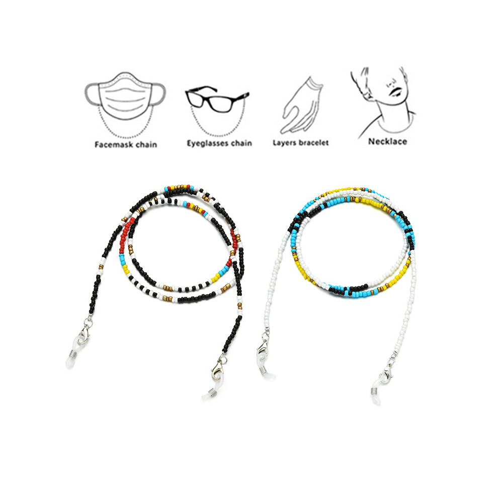 2 Pieces Beaded Glasses Chain, Rice bead mask chain lanyard glasses chain anti-falling anti-lost glasses rope lanyard