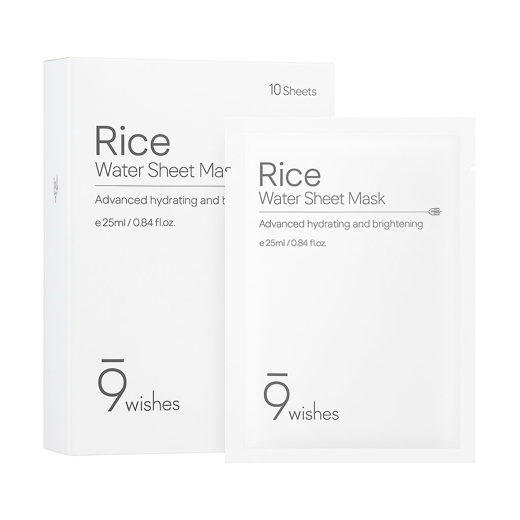 9wishes Rice Water Sheet Mask 25ml x 10 Sheets Hydrating & Brightening, K-Beauty