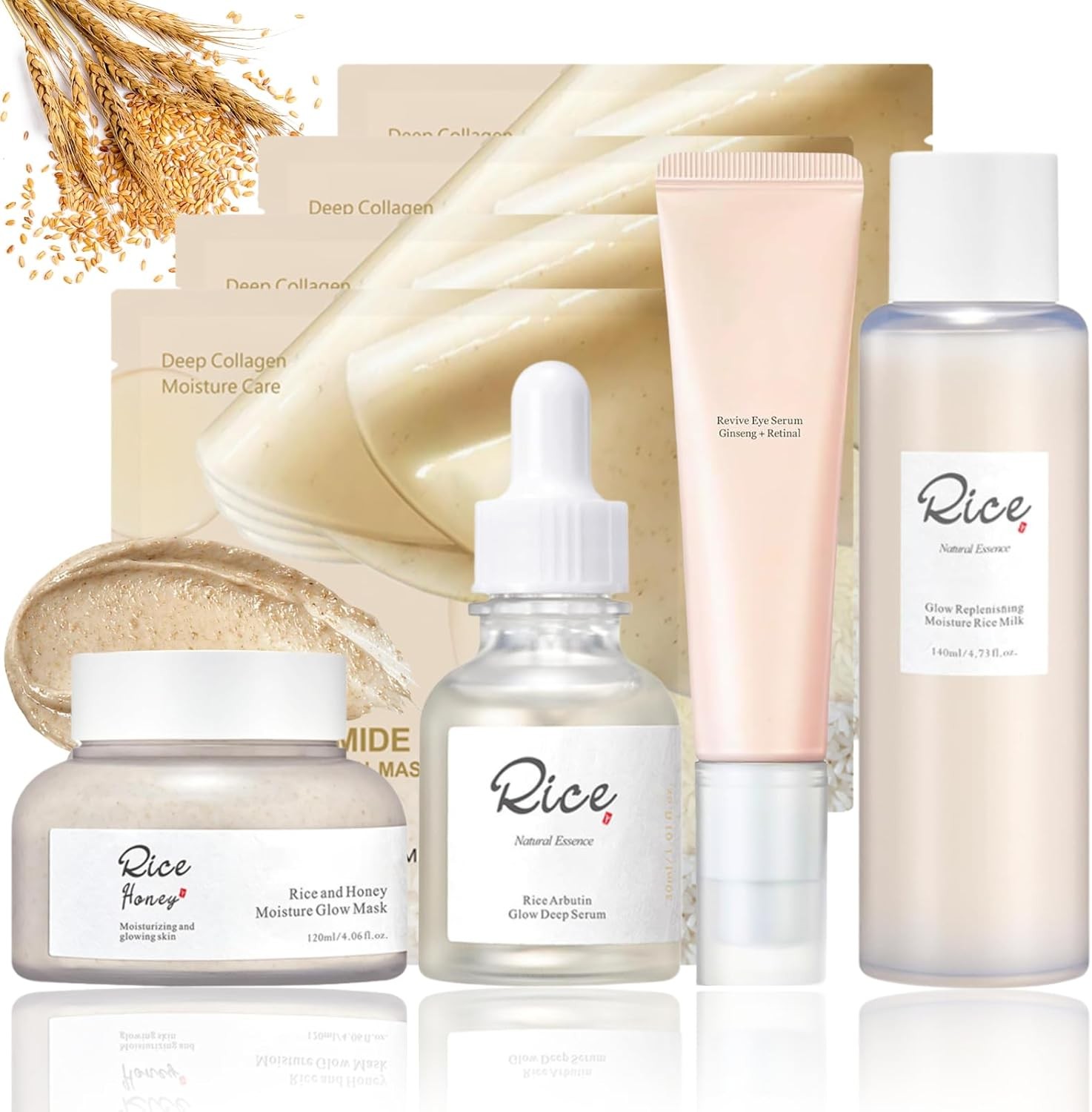 5-Step Korean Glass Skin Set – Rice & Honey Glow Mask, Arbutin Serum, Collage