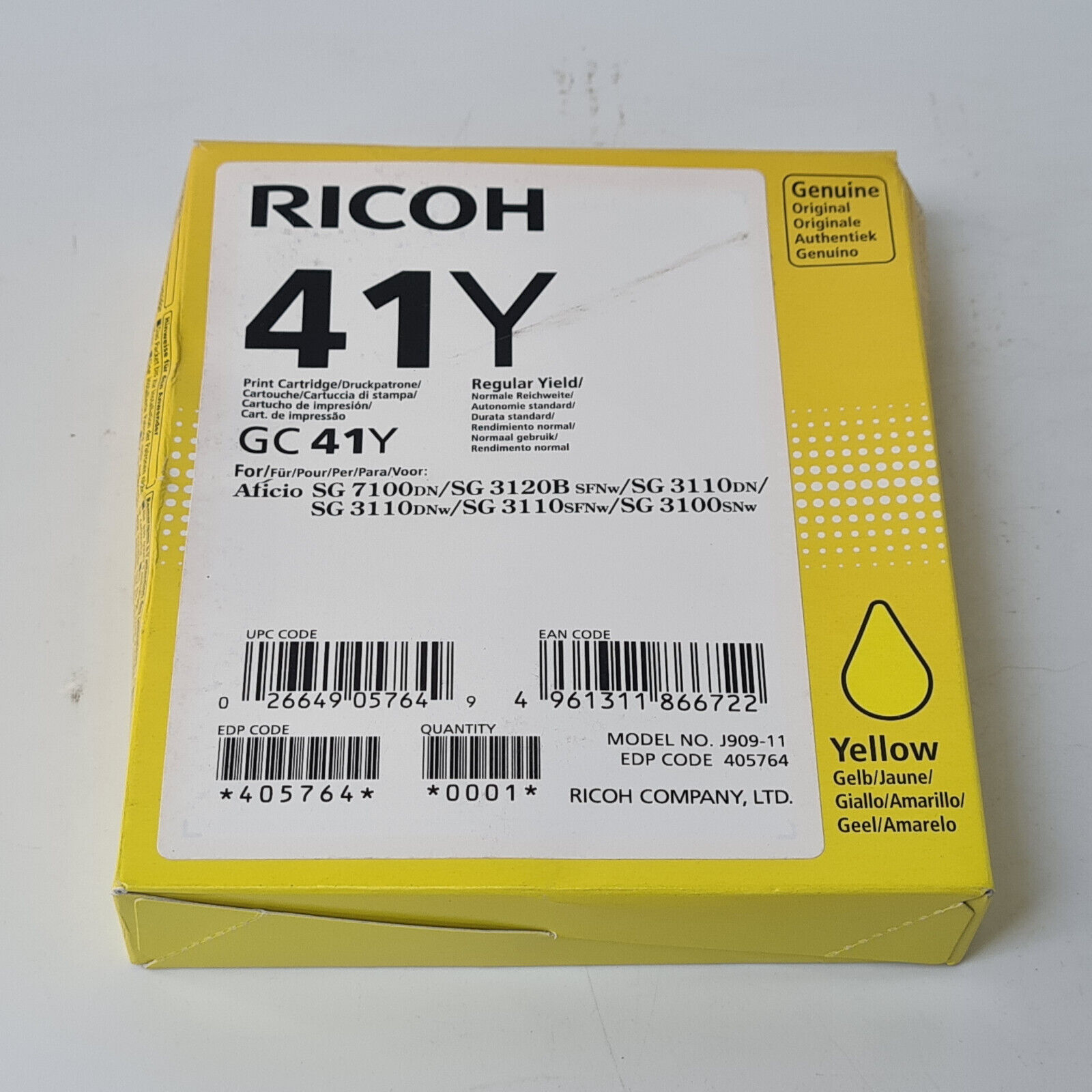 Ricoh GC41Y genuine Yellow 405764 SG 7100 3110 3120 date 02.2024/05.2024/03.2025