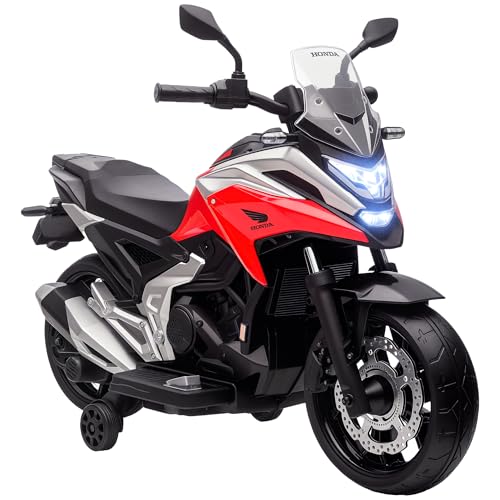 AIYAPLAY Honda Licensed 12V Kids Electric Motorbike, Ride on Motorcycle with Music, Toy safety lights, Early Education Function, 2 Training Wheels, for 3-6 Years - Red