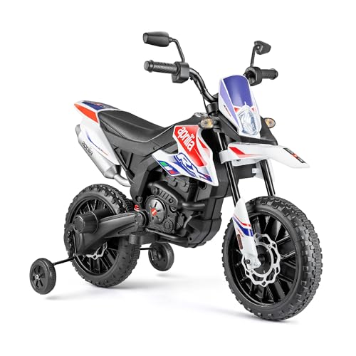 Kids Electric Motorbike, 12V Aprilia RX125 Ride on Motorcycle Dirt Bike with Training Wheels Spring Suspension, Battery Powered Off Road Toy with Bluetooth Lights (Black)