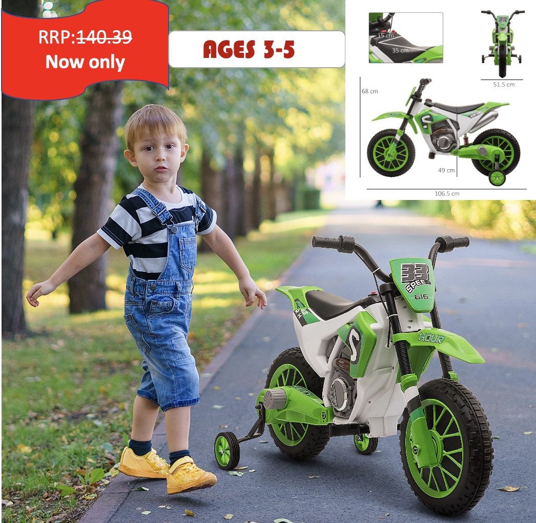 12V Kids Electric Motorbike Ride-On Motorcycle Training Wheels - Green