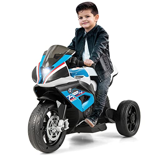 Maxmass 12V Kids Electric Motorcycle, Licensed BMW Battery Powered Ride on Motorbike with Headlight, Music, Horn, Exhaust Pipe, 3 Wheel Children Motor Bike for 3 Years Old+ Boys Girls (Blue)