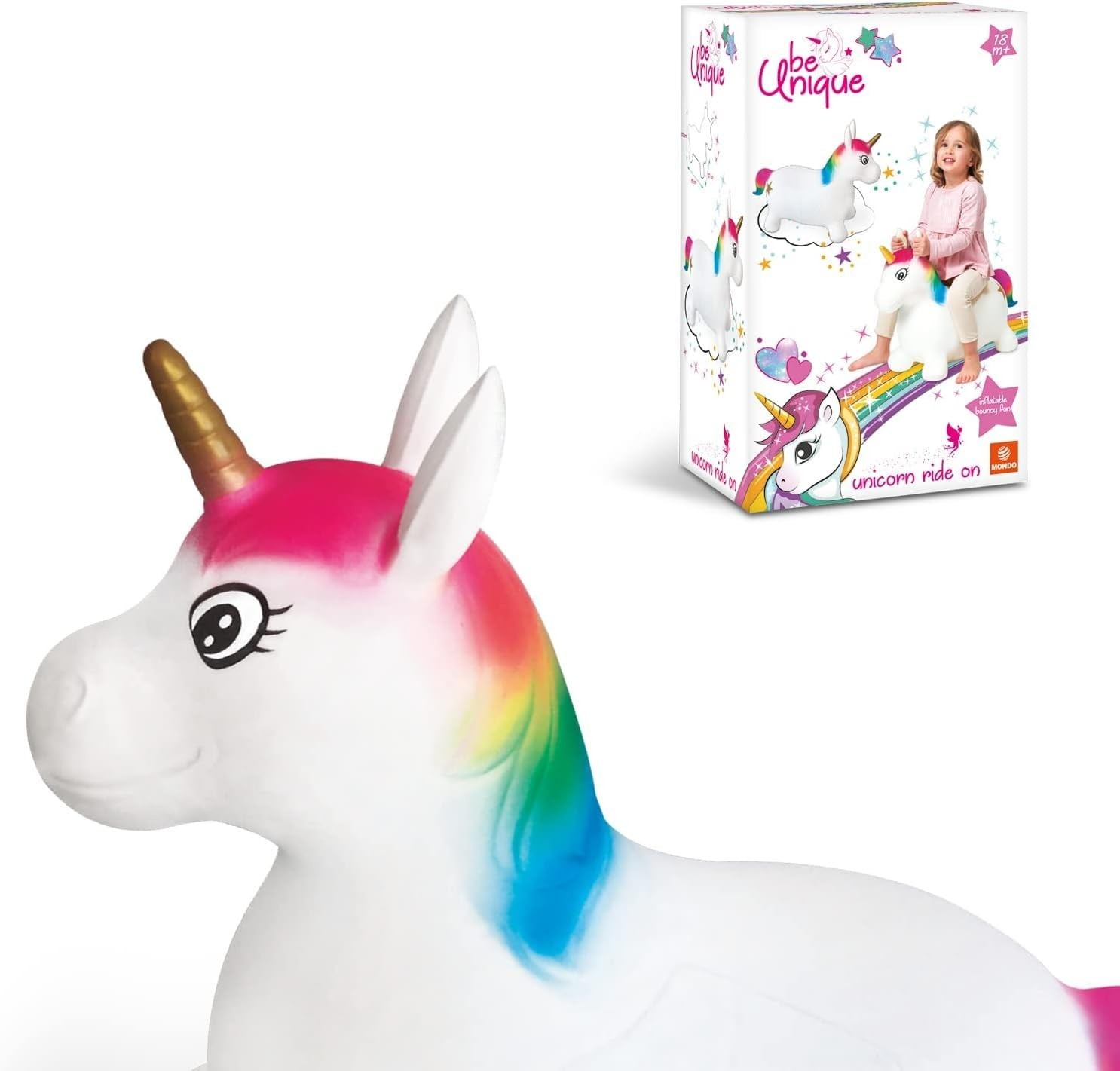 Mondo Toys - Unicorn Ride-On Inflatable Unicorn for Kids - Inflatable Riding Uni