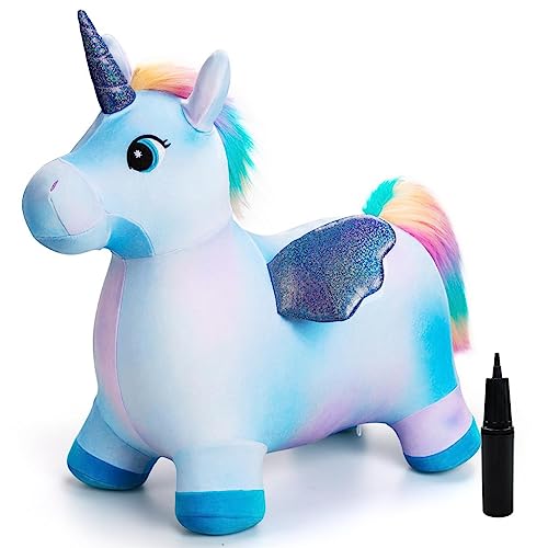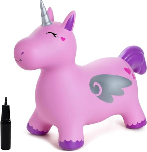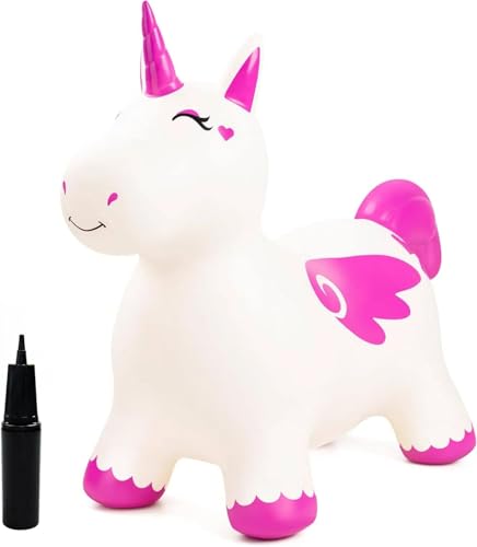 FiNeWaY Unicorn Space Hopper for Kids – Inflatable Bouncy Animal Ride-On Unicorn Toy with Pump Included, Animal Space Hopper for Kids - Christmas & Christening Gifts for Girls