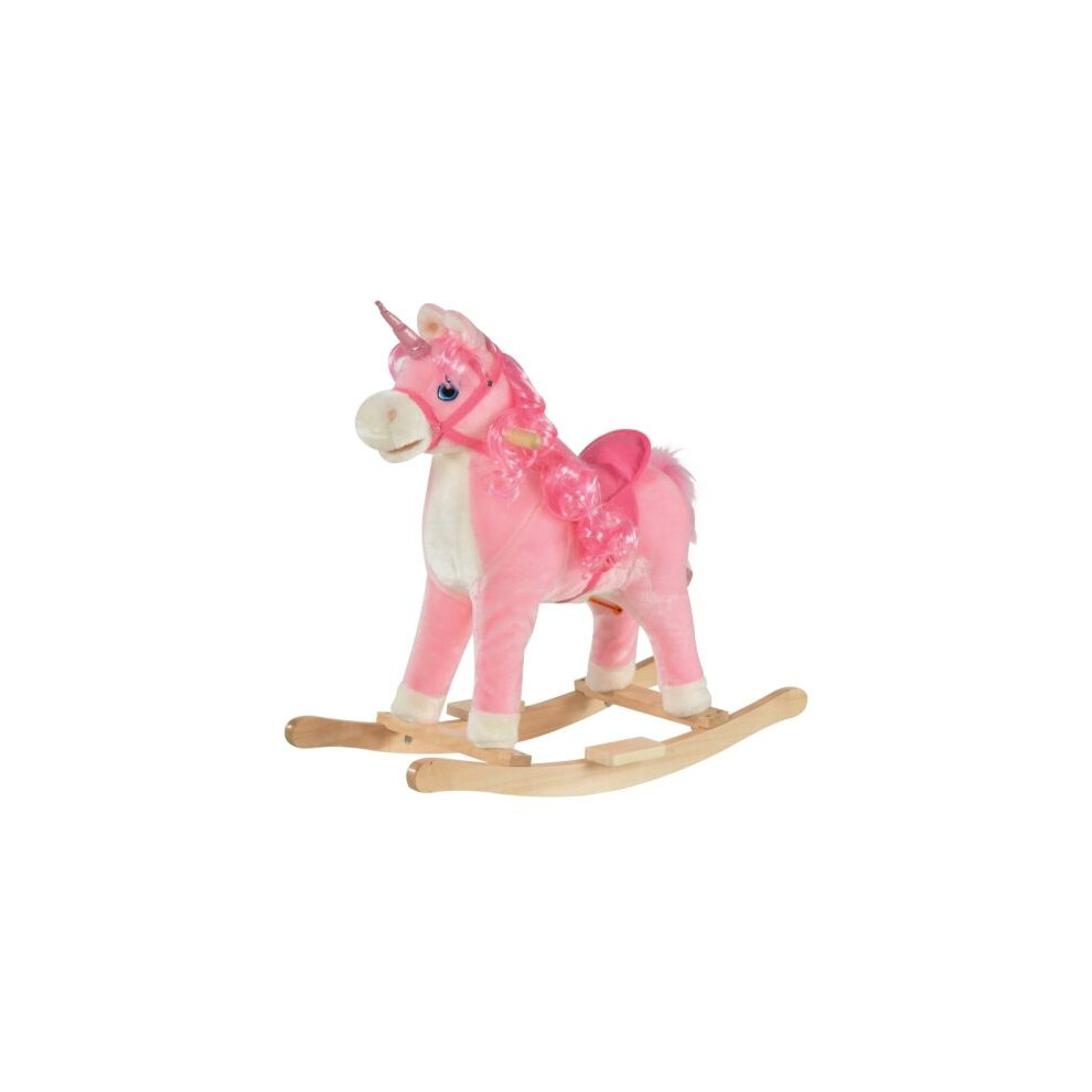 HOMCOM Rocking Horse Plush Ride on Unicorn with Songs Seat Belt - Pink