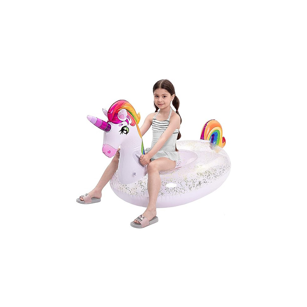 JOYIN Pool Inflatables for Kids, Unicorn Pool Float with Glitters Fun Pool Floats, Ride On Unicorn Beach Lake Floaties Raft Lounge, Party in Summer Decorations Pool Toys for Kids (152.4 x 75 x 85cm)