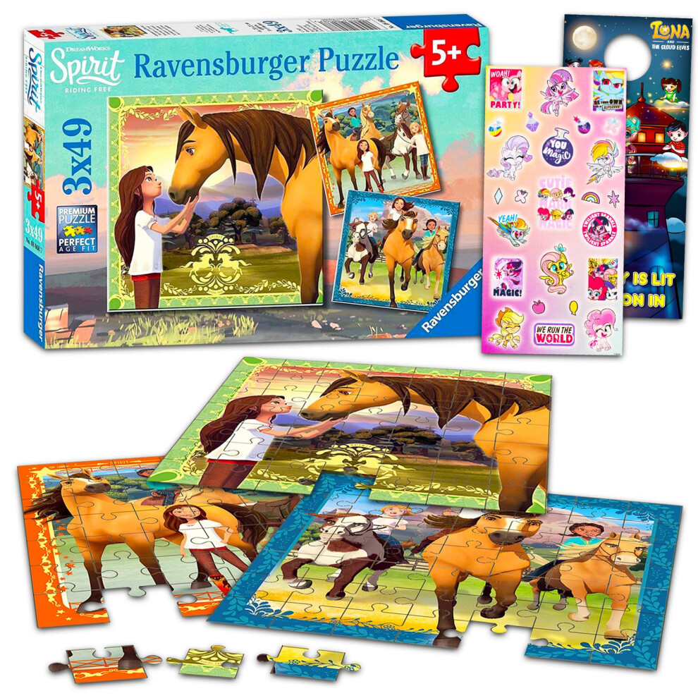 Spirit Horse Jigsaw Puzzle 3 Pack Bundle for Girls - 39 Pc Spirit Riding Free Puzzles for Kids Plus Stickers More | Horse Puzzles for Kids Ages 5-8