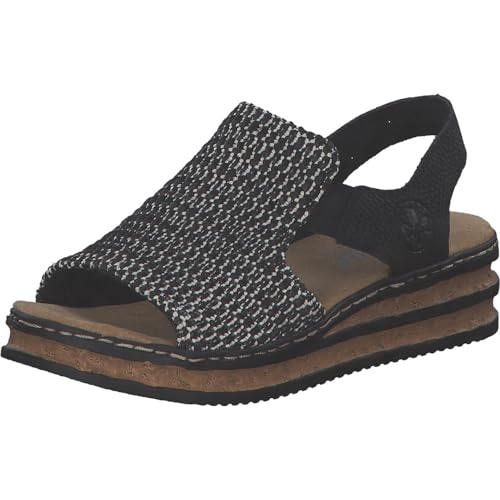 Rieker 69176 Women's wedge heel black and white walking sandals (Black, UK Footwear Size System, Adult, Women, Numeric, Medium, 6.5)