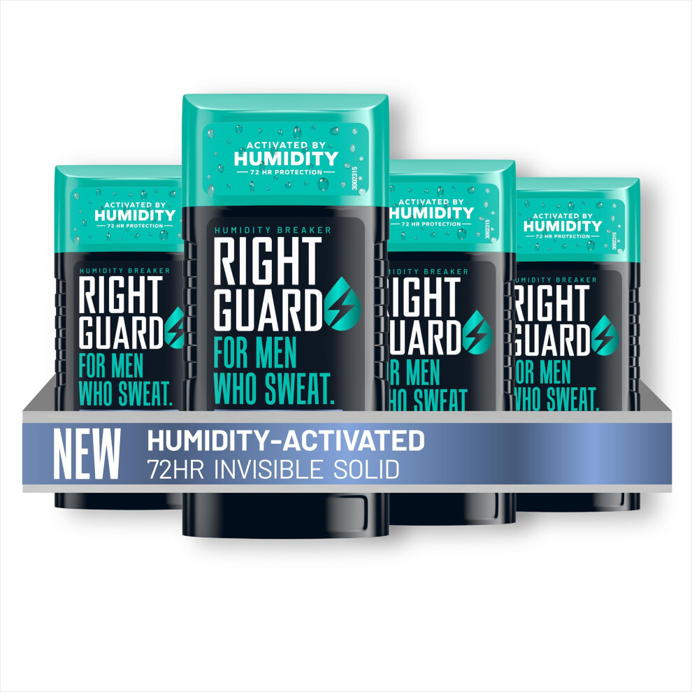 Right Guard Humidity Breaker Antiperspirant & Deodorant for Men Cold Front Scent 2.5oz (4 Pack) Invisible Solid 2x Sweat Protection 72HR Odor