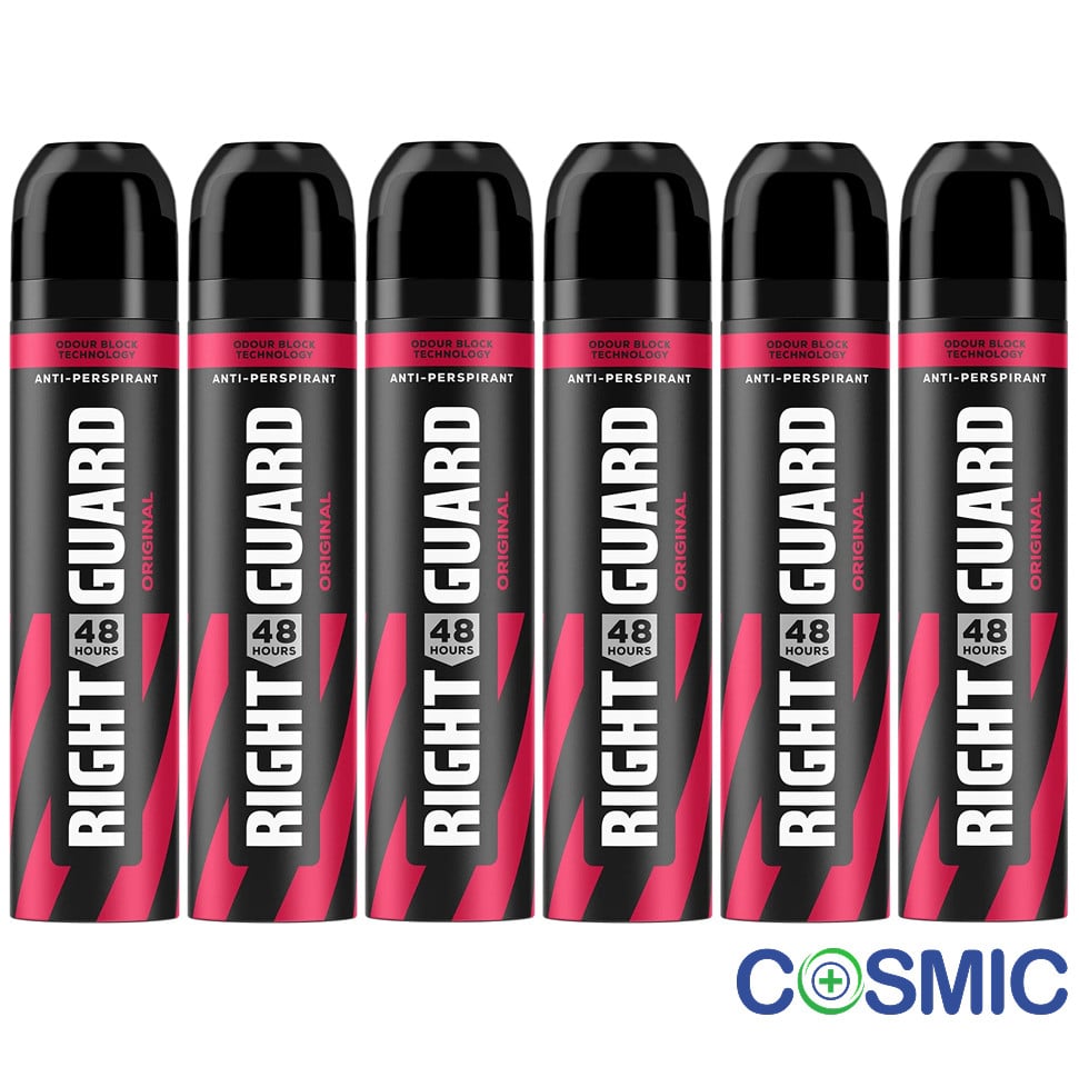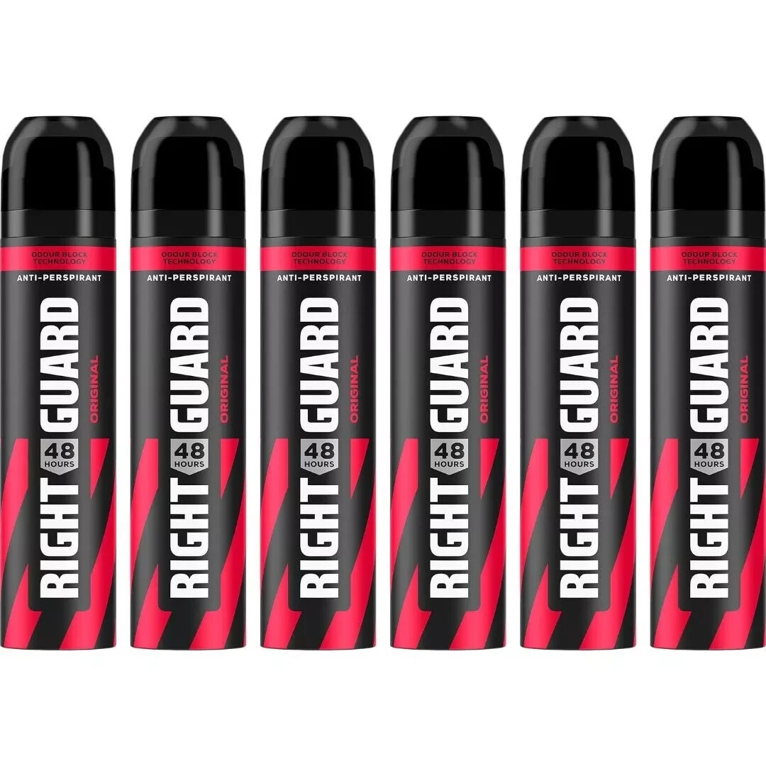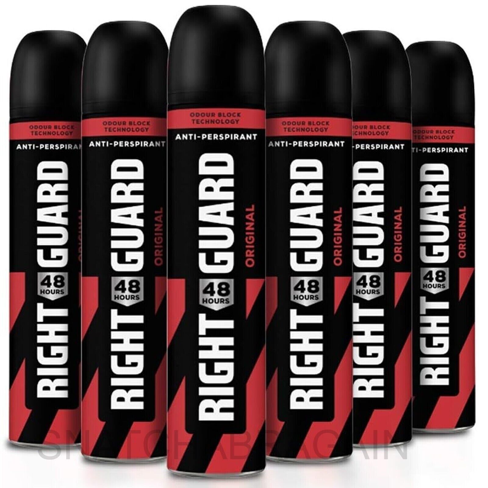 6 x RIGHT GUARD ORIGINAL FOR MEN 48hr PROTECTION ANTI-PERSPIRANT SPRAY 250ml