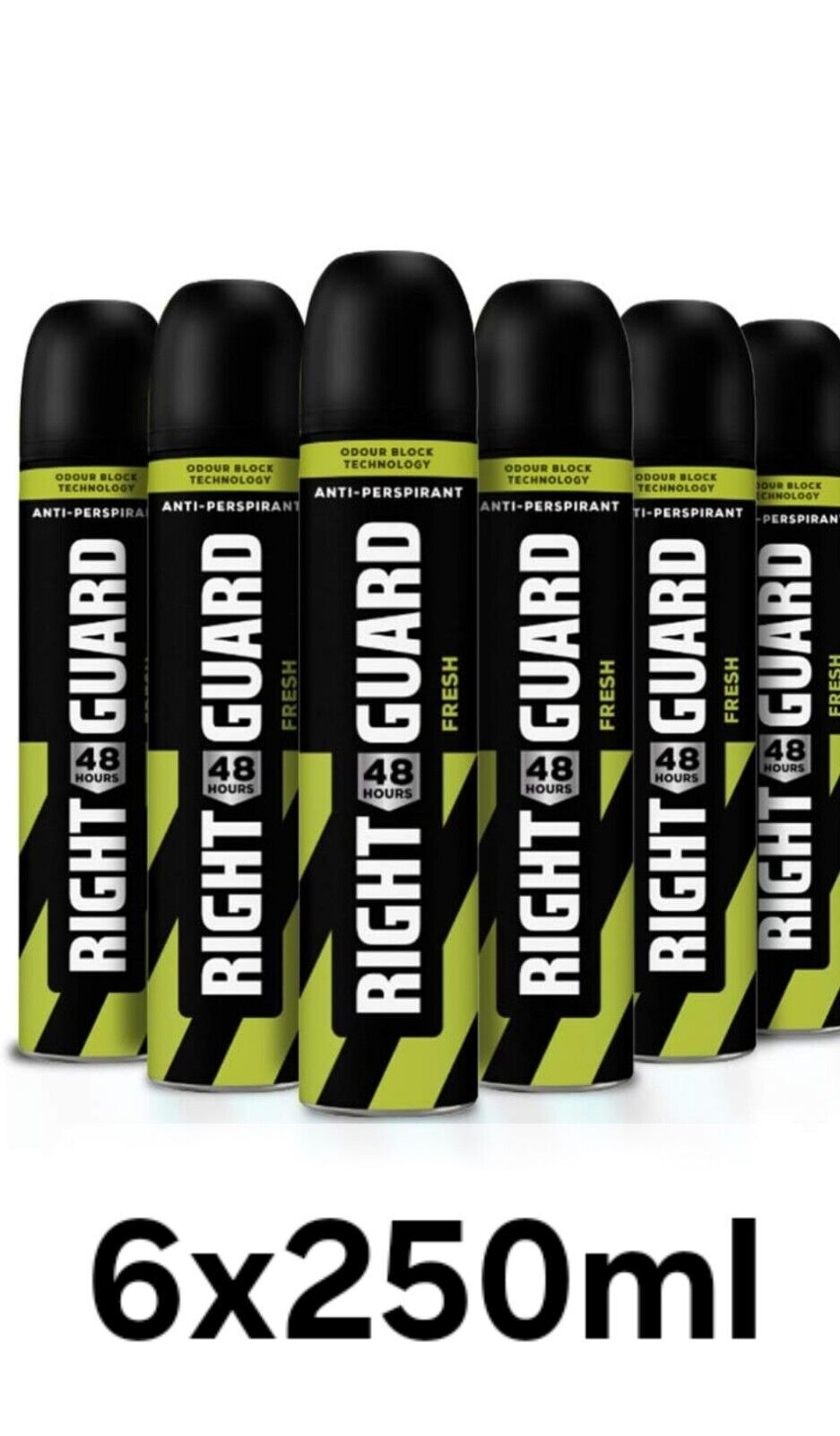 6 x RIGHT GUARD FRESH FOR MEN 48hr PROTECTION ANTI-PERSPIRANT SPRAY 250ml