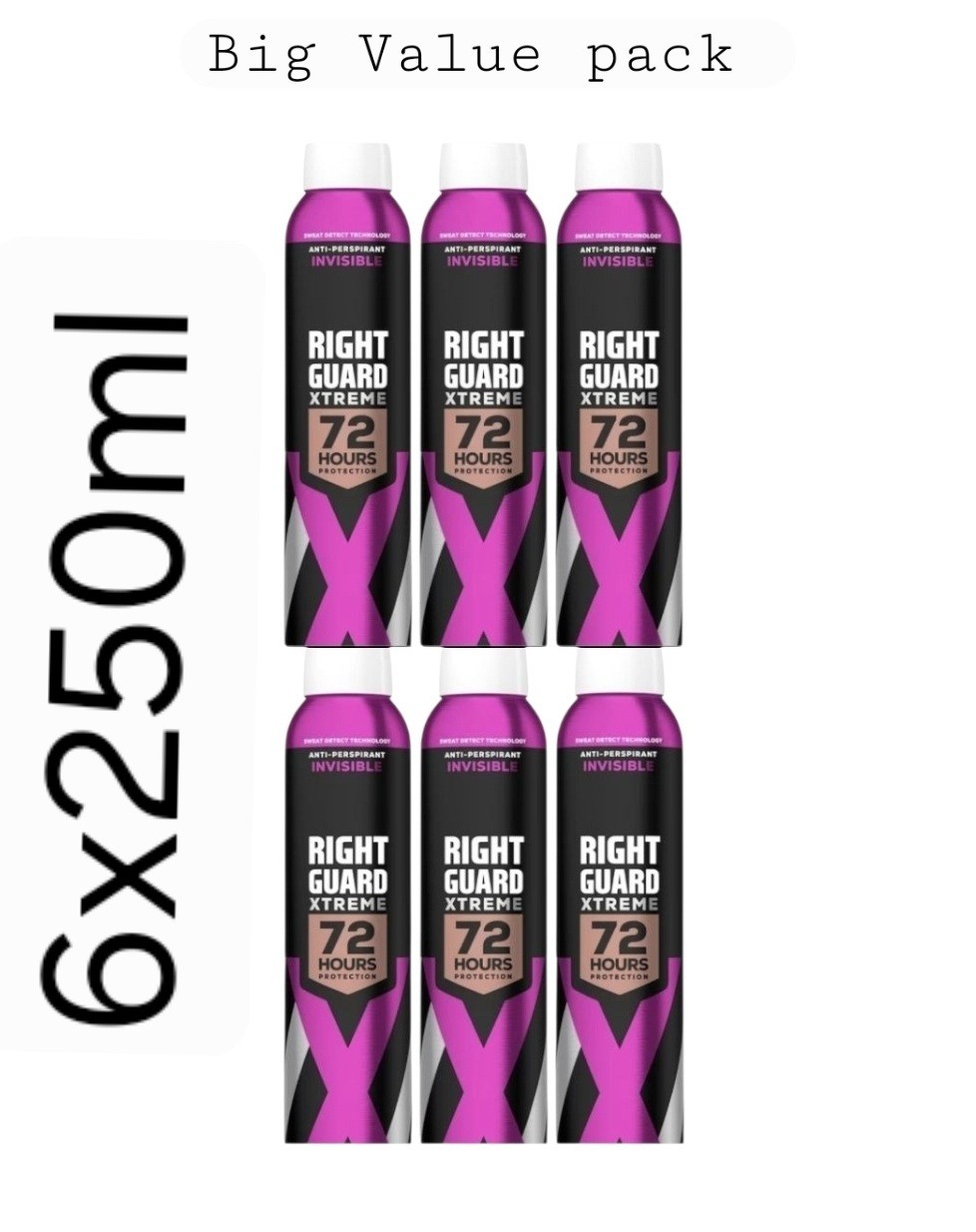 6 X Right Guard Xtreme Invisible Anti-Perspirant Deodorant Women 6x250ml Pack
