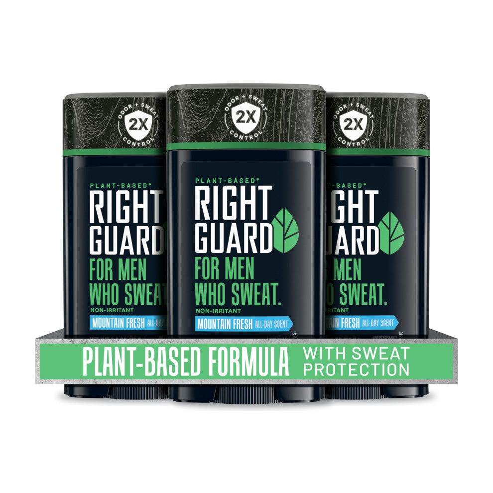 Right Guard Plant-Based Antiperspirant Invisible Solid Mountain Fresh Mens Deodorant 2.6 oz (3 Pack) Antiperspirant Deodorant for Men 2X Sweat