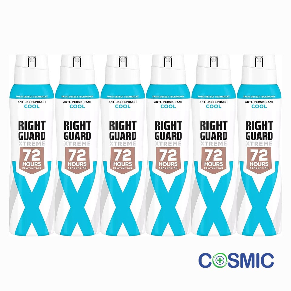 Right Guard Mens Deodorant, Xtreme Cool with Air-Conditioning Effect Anti-Perspirant Spray, Multipack 6 x 150 ml