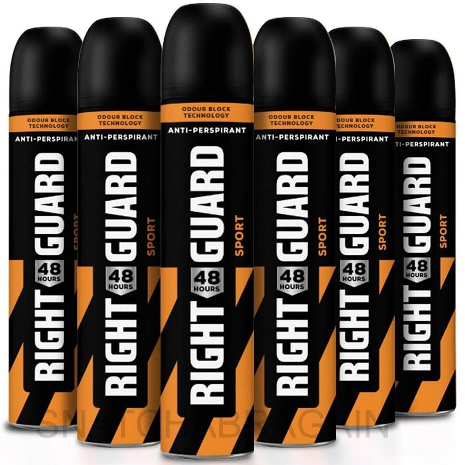 6 x 250ml Right Guard SPORT Men Deodorant Anti-Perspirant 48h - Pack of 6