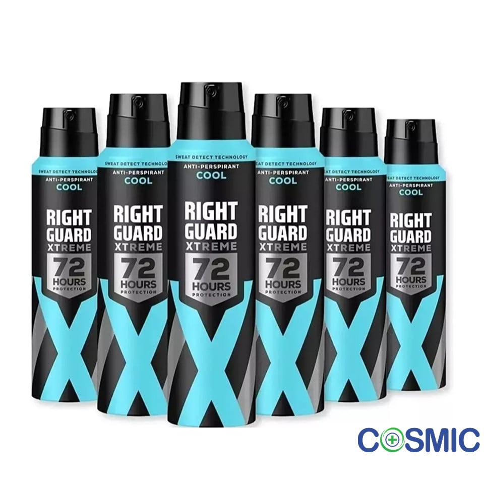 6 X Right Guard Mens Anti-Perspirant Deodorant Aerosol Xtreme Cool 150ml