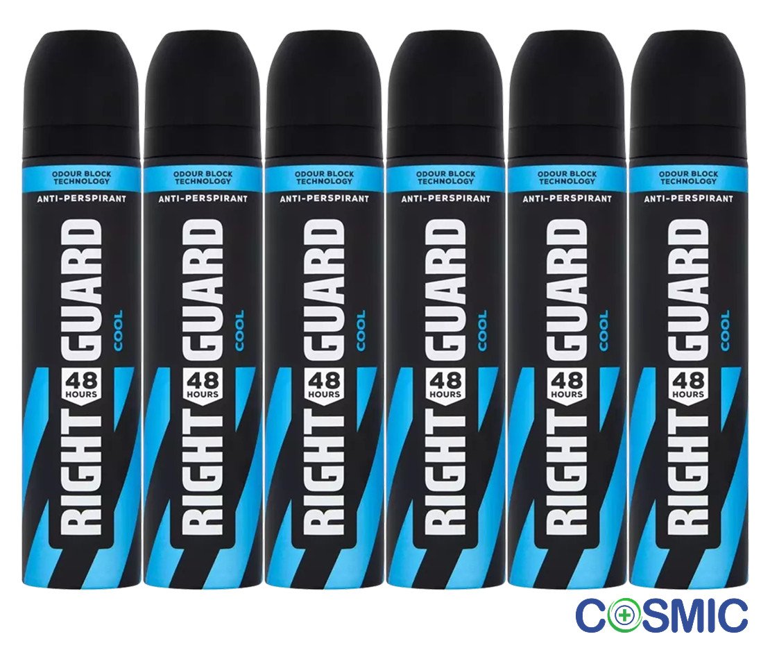 6 x RIGHT GUARD COOL FOR MEN 48hr PROTECTION ANTI-PERSPIRANT SPRAY 250ml