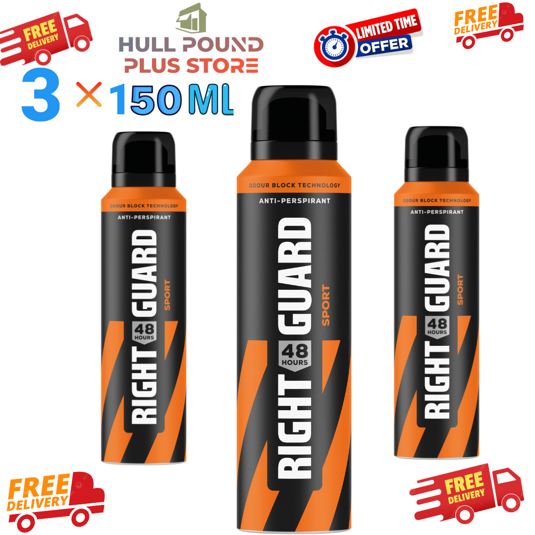 3 x 250ml Right Guard SPORT Men Deodorant Antiperspirant Spray 48h Protection