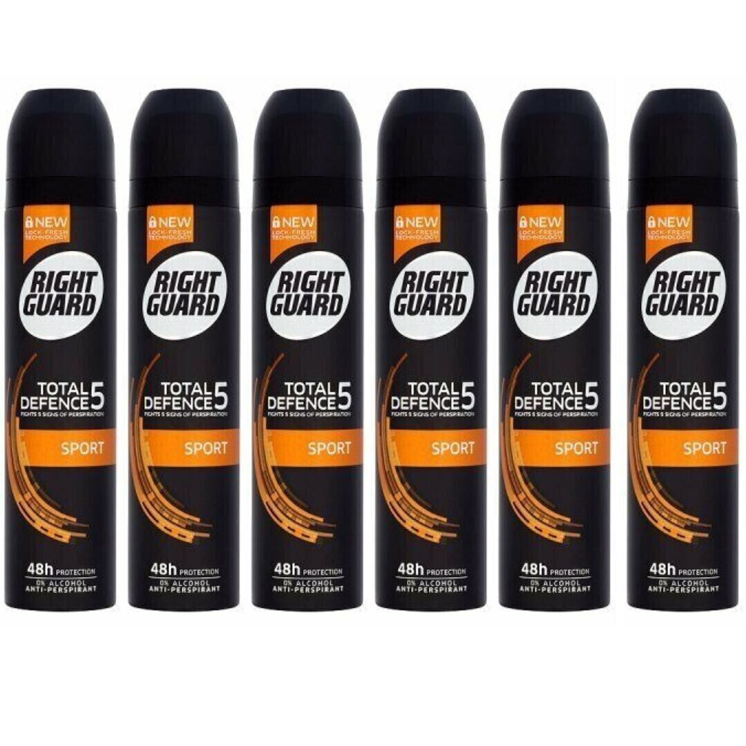 Right Guard Mens Deodorant, Total Defence Fresh Anti-Perspirant Spray Pack Of 6