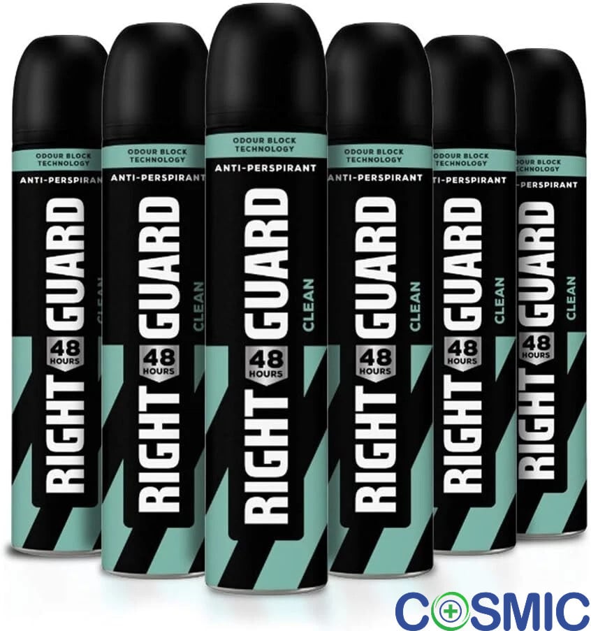 6 X RIGHT GUARD CLEAN FOR MEN 48hr PROTECTION ANTI-PERSPIRANT SPRAY 250ml