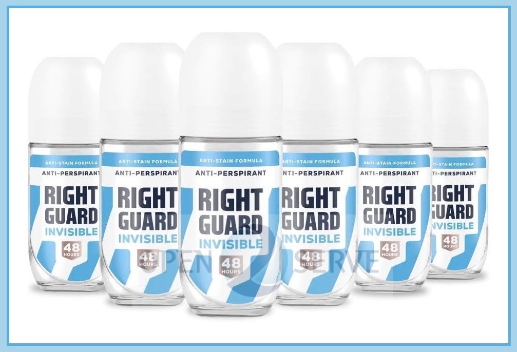 6x Right Guard Women Invisible Deodorant Roll On - 48H | Anti Stain | TD5 - 50ml