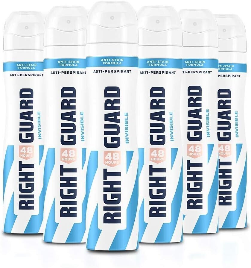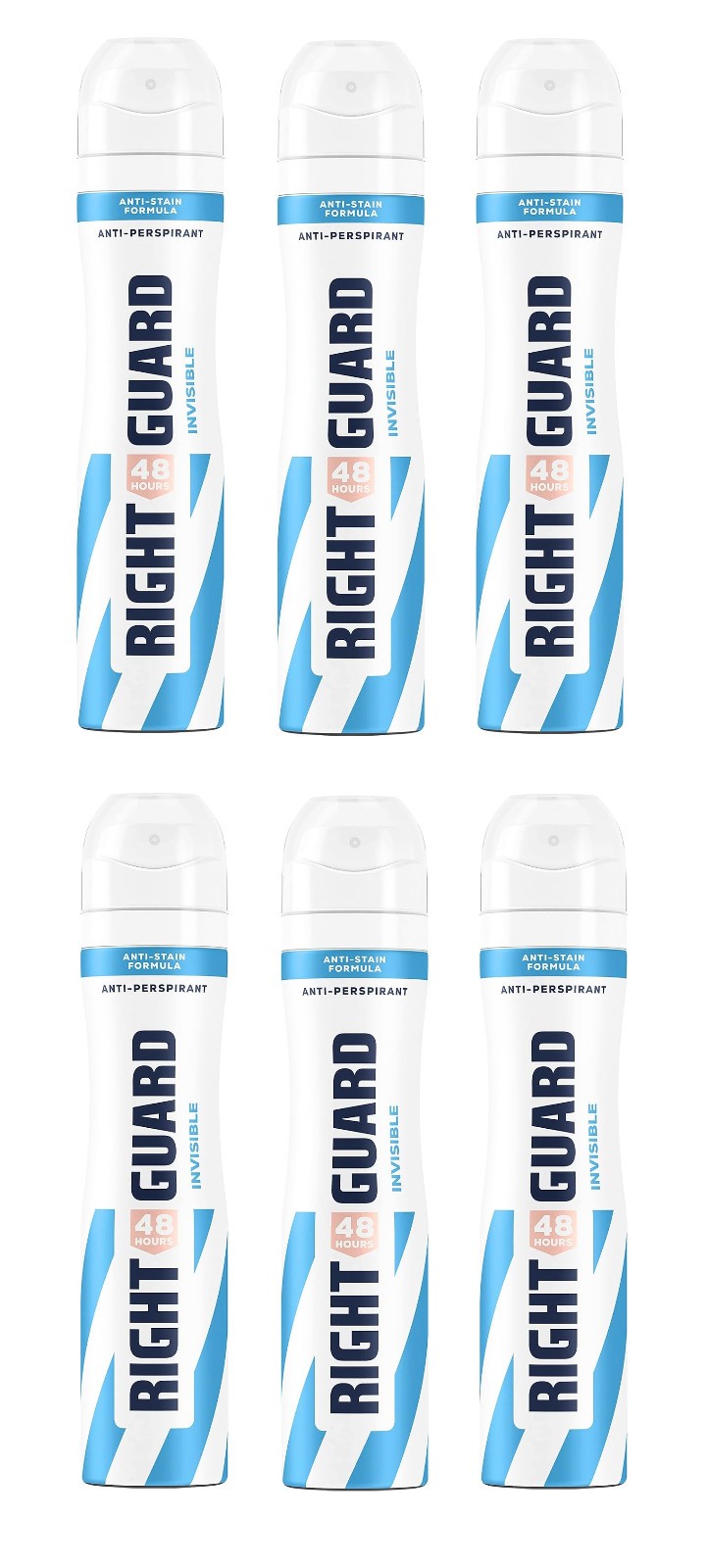 6 x Right Guard Women's Deodorant Invisible Anti-Perspirant Spray 250ml