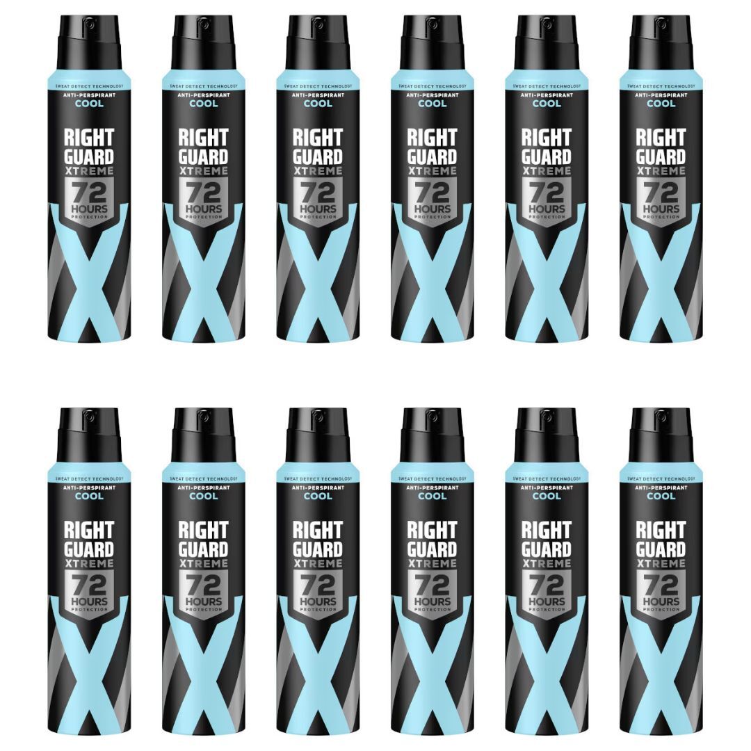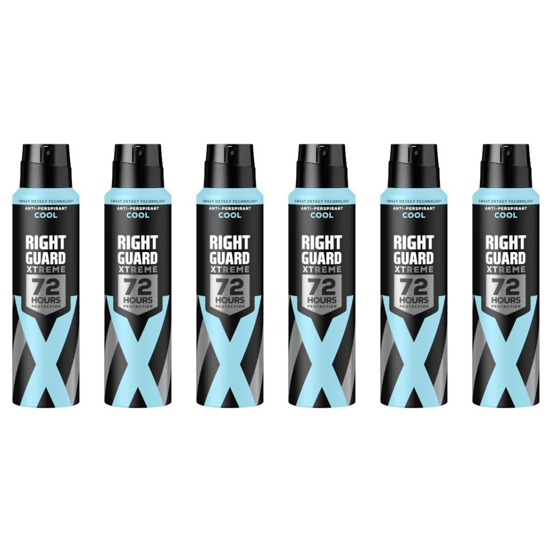 Right Guard Mens Deodorant, Xtreme Cool with Air-Conditioning Effect Anti-Perspirant Spray, Multipack 6 x 150 ml
