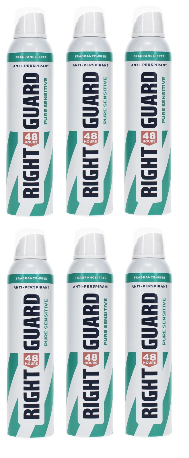 6 x Right Guard Women Pure Sensitive Total Defence 5 Deodorant 250ml