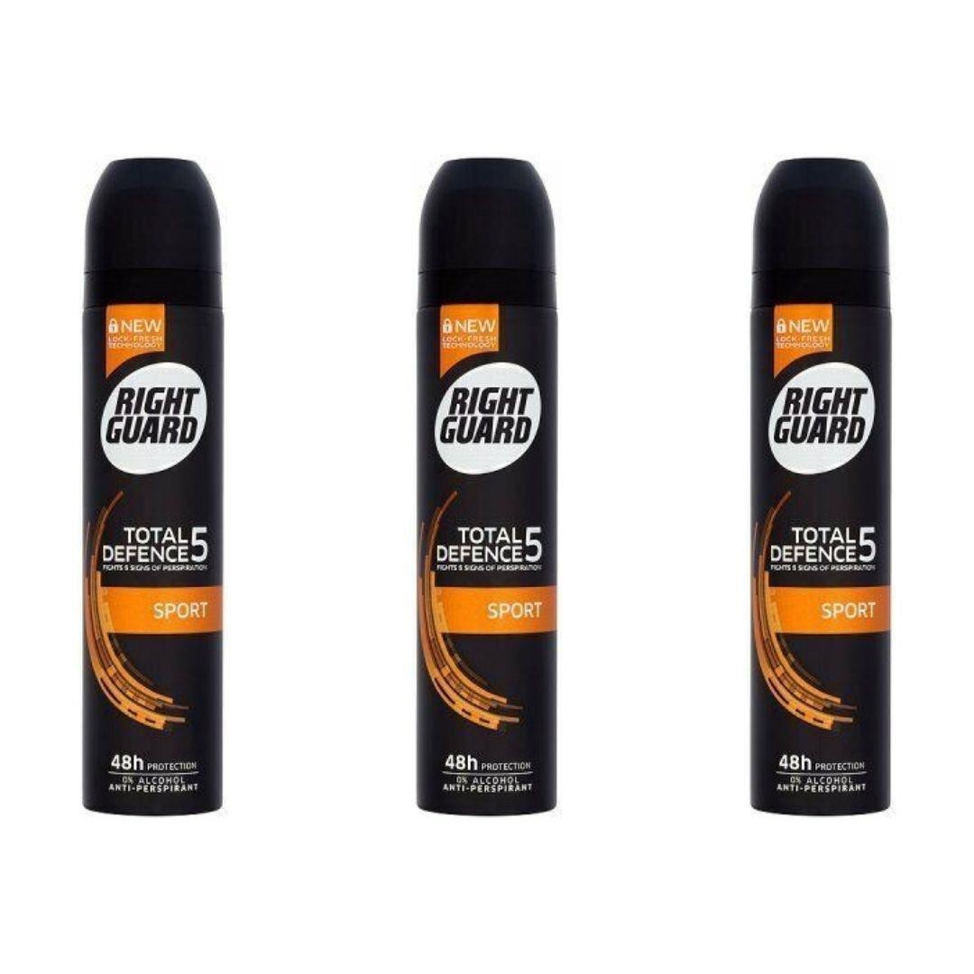 3 x Right Guard Men Sport Total Defence 5 Anti-Perspirant Deodorant Spray 250ml